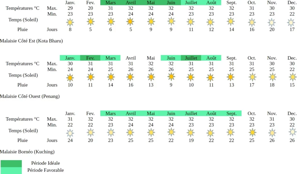 => les périodes à privilégier pour visiter la Malaisie seraient :